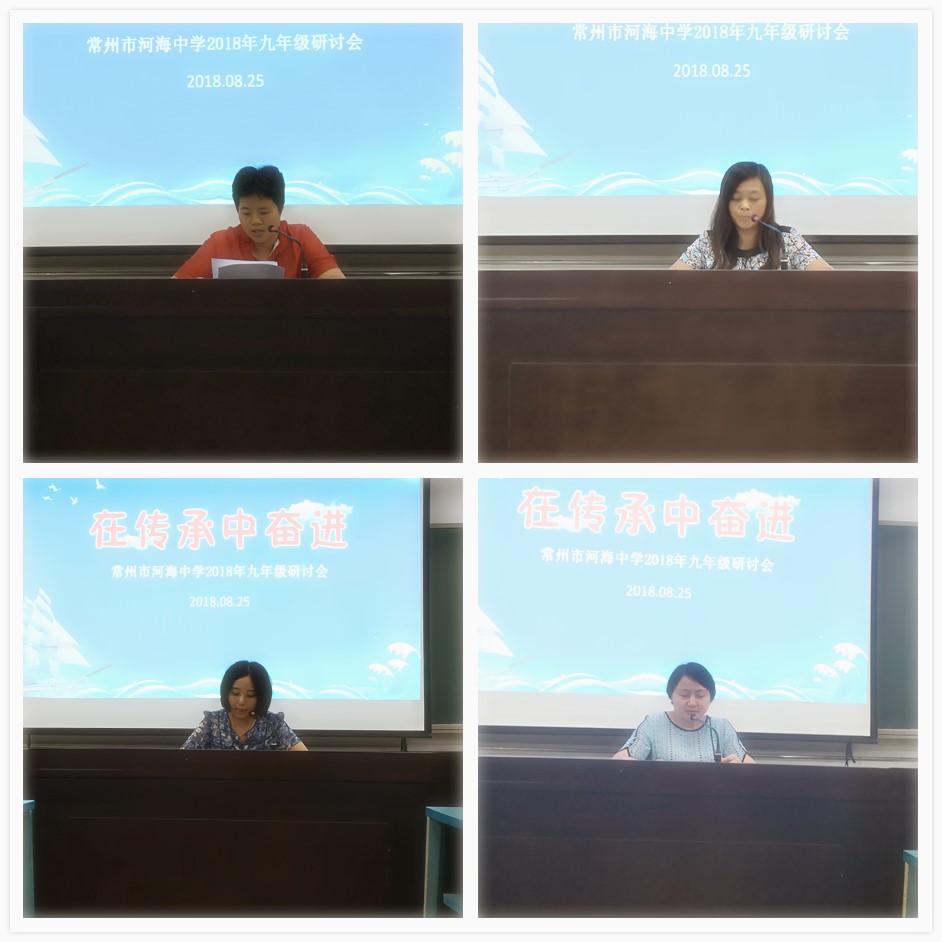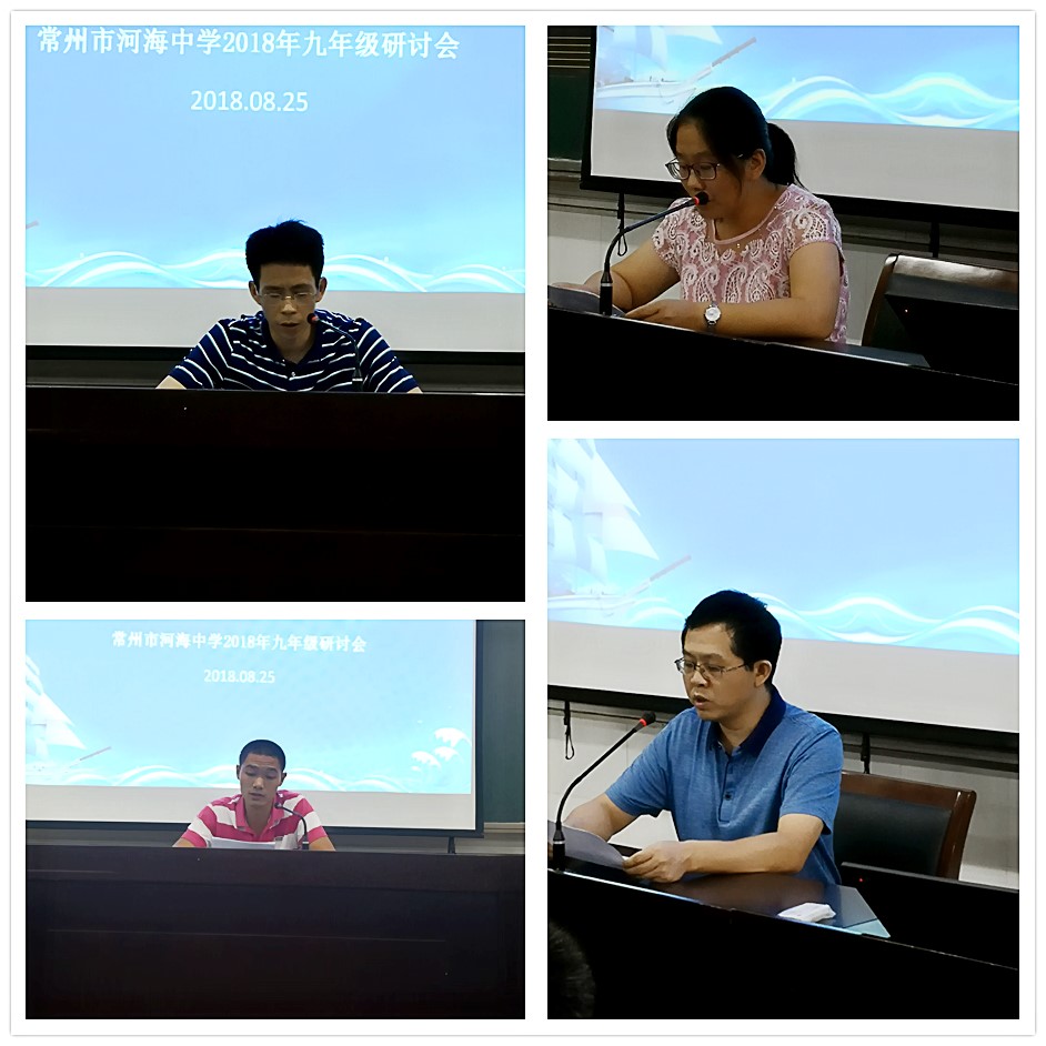 08月25日下午,河海中学召开2018年九年级研讨会,新老九年级全体教师和学校行政人员齐聚一堂,总结过去一年得失,共谋新一届毕业班发展之路。
