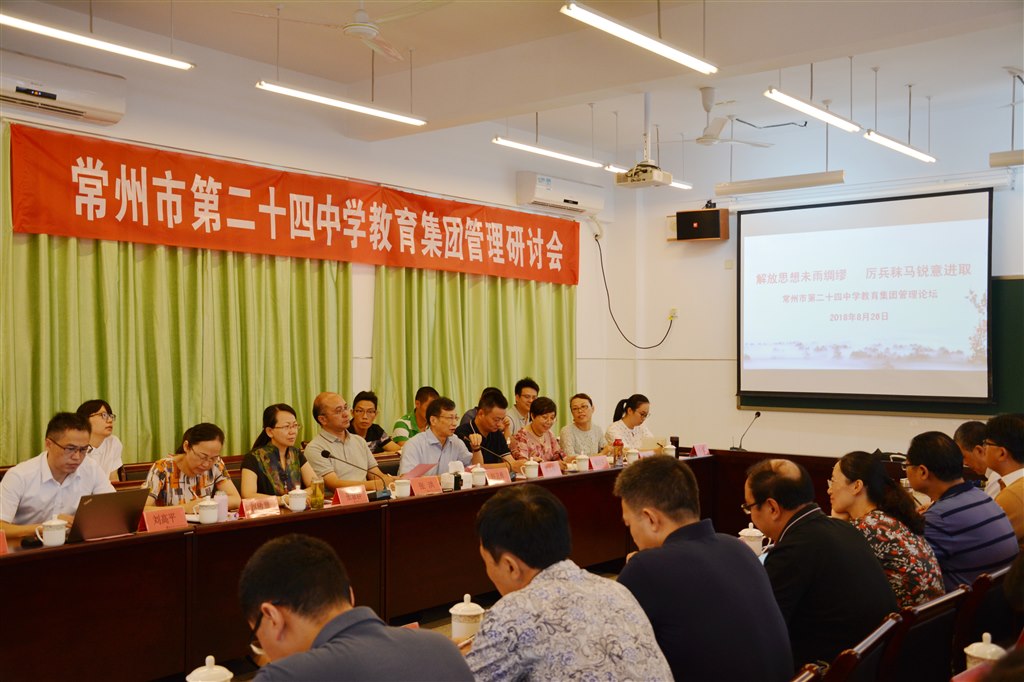 为进一步打造高品质的教育集团,建设高素质的管理队伍,8月26日上午,常州市第二十四中学教育集团在二十四中天宁分校举行了主题为“解放思想未雨绸缪,厉兵秣马锐意进取”管理论坛活动。二十四中、河海中学、二十四中天宁分校、二十四中金坛分校和二十四中兰陵分校的全体中层以上干部参会,论坛由河海中学校长赵卫勇主持。