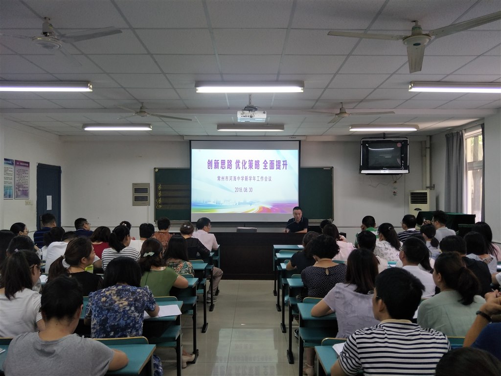 08月30日上午,常州市河海中学2018-2019学年开学工作会议在多功能教室隆重举行。会议由贺文明副校长主持。