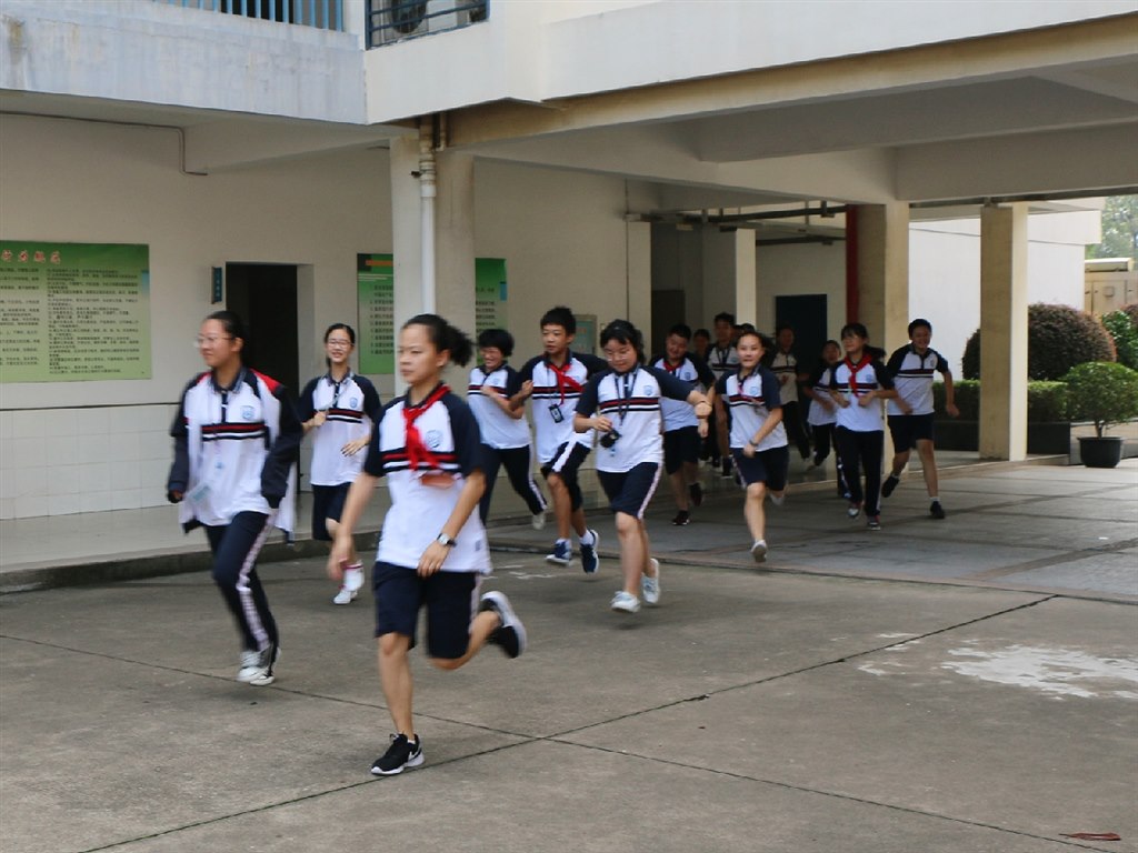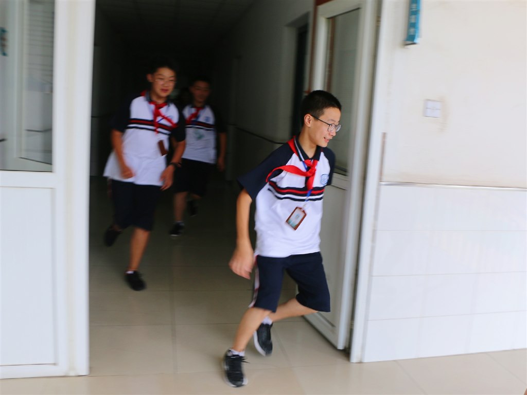 上午9点20分,随着紧急的报警声响起,老师到达指定岗位,指导学生有序快速疏散。每一位同学们绷紧神经,迅速跑出教室,按照指定路线,迅速撤离到学校的安全地带。