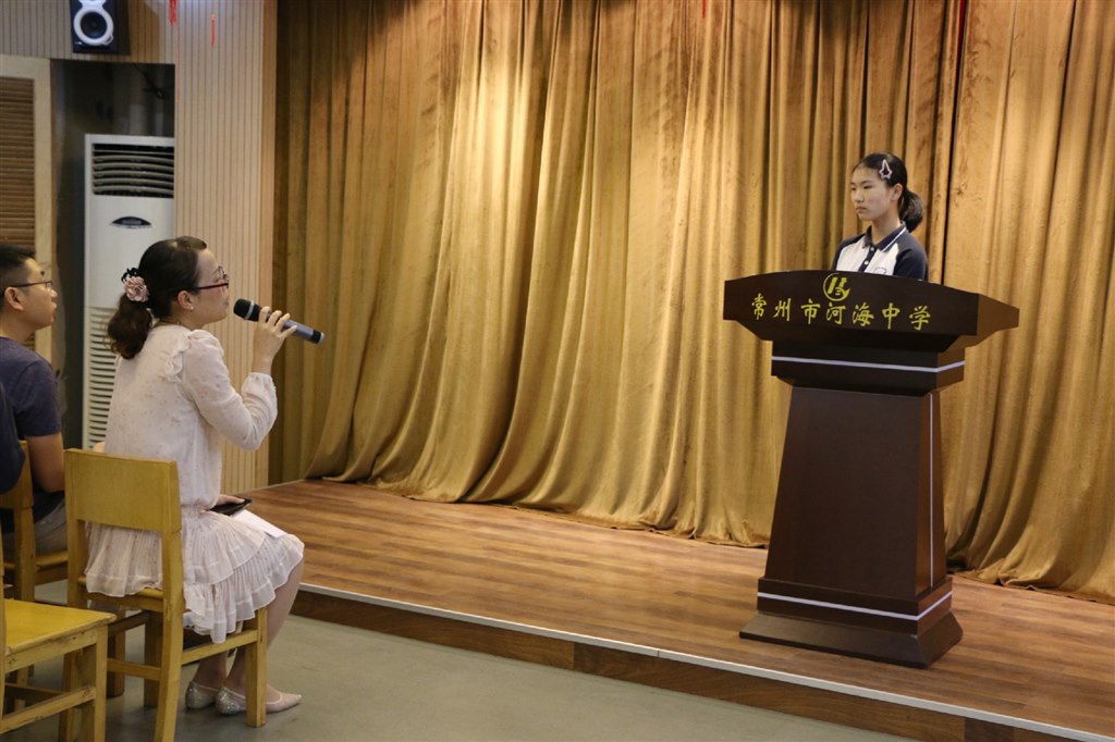 09月28日,河海中学举行了第十一届学生会主席换届竞选活动。 上届学生会主席曹生娜同学就一年来的工作进行了汇报和总结,并对候选人提出了殷切希望。