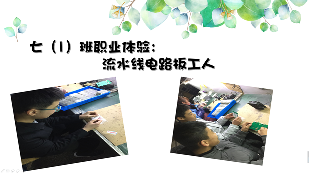 走进电板车间,便看见工人们娴熟地将主板与配件连接、拼装,我们也迫不及待地拿起块电路板开始安装起来,一开始觉得简单非常,过不了多久却已经是满头大汗了。此时我不由对工人们充满敬意,为他们这份平凡的坚持,也为他们沉甸甸的梦想!
