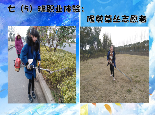 我们的体验是修剪树木的志愿者。能让草坪变得整齐干净,想想都让人心旷神怡,然而,事非经历不知难。修剪的过程让我们学习了园林机械知识的同时,更是体验了园林工人的辛苦、严谨、稳重、细致和坚韧,对大自然这份付出让我喜悦万分。