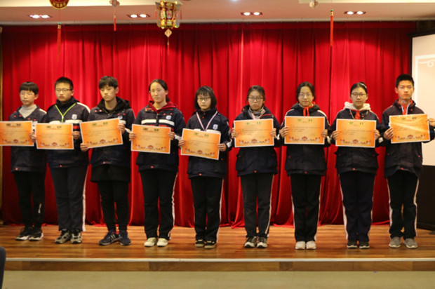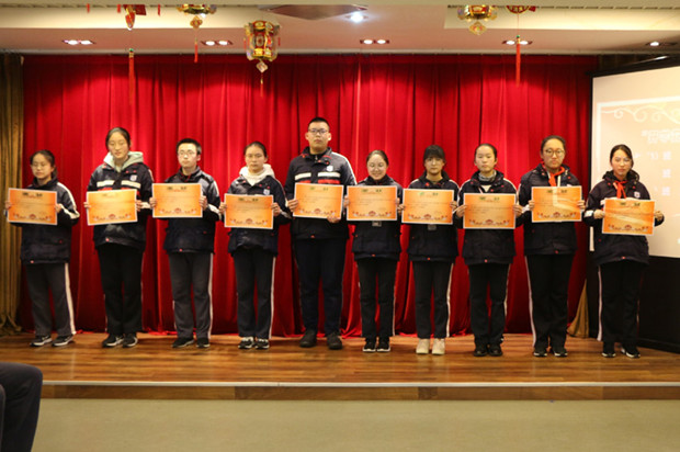 学校对寒假各类活动中表现突出的同学进行了表彰。语文教研组长丁亚华老师和综合教研组长马郁茜老师分别对“致敬英雄”征文比赛和河海中学校徽作品进行点评并宣读奖项。