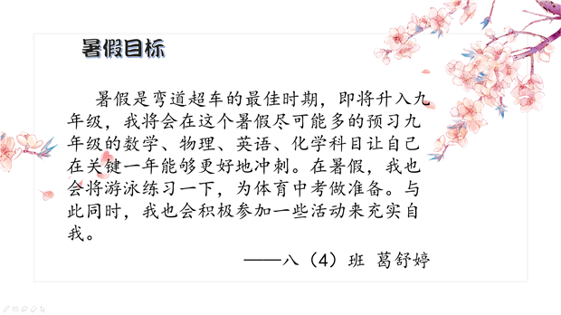 目标之于我们,是做好每一步人生选择。短到期中考试该怎么考,八年级暑假该怎么利用;又或者长如考什么高中,念什么大学。漫漫人生路,有了明确的目标,人生才有方向,才不会觉得无事可做,才会创造属于自己的奇迹。