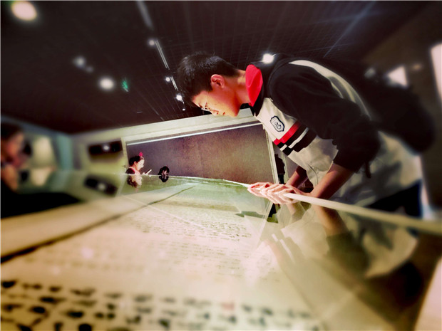 金碧辉煌,红墙玉阶,刻画出博物院的韵调,唐画宋瓷,石雕翠绸,渲染出南京历史独有的风骚。所有的文物,都幻化成无与伦比的文化,不禁令我感慨中华博大的历史底蕴,再携一朵吹来的白絮,便仿佛一下子飘进了历史的余音里,深沉伟岸!