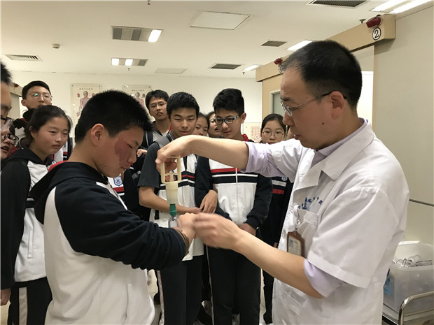 中医文化源远流长,挽救了千千万万的生命,从丁甘仁到屠呦呦,从中国到世界,孟河医派用自己的力量影响着世界,越来越多的医者在传承着民族的瑰宝。在中医院针灸科石主任的带领下,同学们亲身体会了拔罐、针灸等中医治疗手段的功效,感受到了中医文化的博大精深。