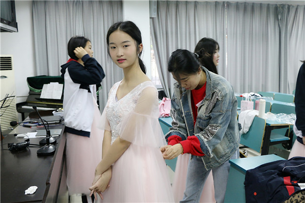 这只合唱队由15位七八年级女生组成,音乐老师精心挑选,于4月初正式成立。面对时间短、曲目难的问题,老师和同学们克服困难,利用平时在校的自习课和社团课练习,不管刮风下雨每周六总是按时到校进行排练。终于苦心不负,舞台上同学们流畅的旋律、默契的配合、优美的嗓音展现了河海学子的魅力,同样也赢得了观众的掌声。