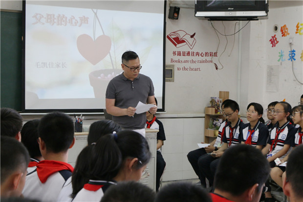 主题班会新颖独特的形式、精彩纷呈的内容,让家长看的津津有味:一张张旧照片引发我们的回忆,一出出自编自导自演的节目让家长感叹孩子的才艺,一首首歌曲唤起我们共同的心声,一封封感人至深的信件让大家激动流泪……默契的配合、坦诚的交流、真心的互动,感动与幸福在空气中弥散蔓延……