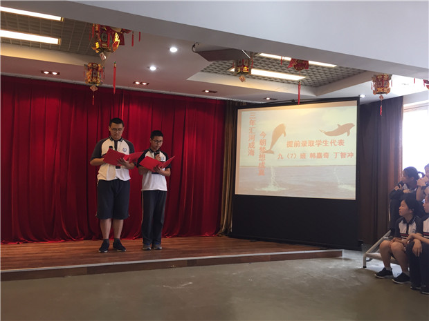 已经被提前录取的韩嘉奇、丁智冲同学深情回顾了与同伴们在河海一起挥洒汗水的三年美好岁月,质朴的语言饱含了同学间浓浓的情谊和必胜的信心,道出了心中万千祝福。