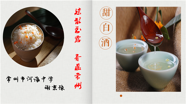 “甜白酒要口伐,卖甜白酒……”乡音袅袅,谢京豫老师给我们介绍的便是这香甜可口的甜白酒,那淡淡的桂花香味以及甜淳的酒香味,沁人心脾。在他的介绍下,孩子认识了甜白酒的前世今生,也看到了过去那一道独特的城市风景线。