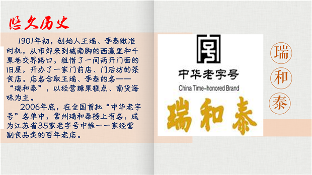 周琳老师给我们介绍的是常州人心中副食品的头号牌子——瑞和泰。在她娓娓道来的讲述下,我们看到“百年老店百年情”,是瑞和泰的服务宗旨,而现在这个企业面对竞争,最为坚持的是唯以质量求生存,让孩子们学到锲而不舍的坚守品质。