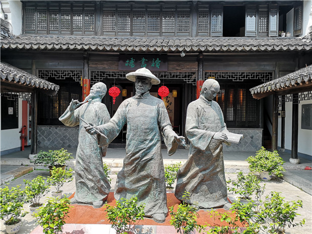 让我印象最深刻的是常州方志馆。轻推扉门,走进院落,修志名家洪亮吉、李兆洛、孙星衍的三人群像映入眼帘。“读方志、观舆地、歌城府、阅人迹、览文化、仰文魁、研史籍”,老常州的历史风貌被悉心的珍藏保存,贴近历史的脉搏,传承着一代又一代常州人的集体记忆。