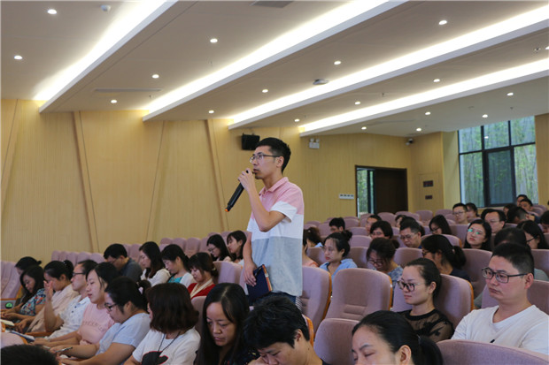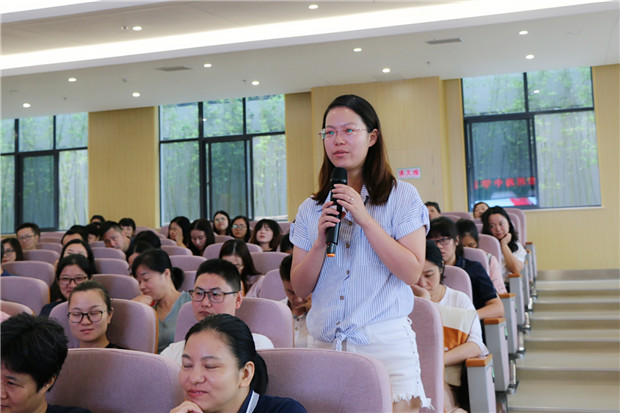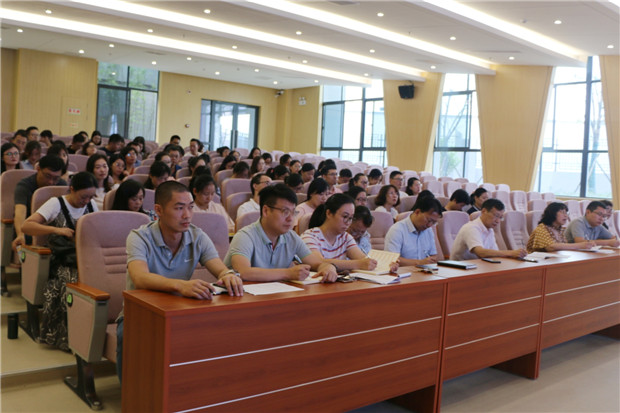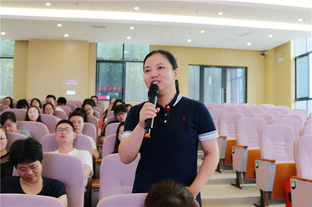 赵校长从2019届的新生的招生情况谈起,与教师们进行轻松愉悦的现场互动,共同探讨如何进一步提升育人本领、服务学校发展。不忘教育初心、强化责任意识、加强专业技能、与校互生共荣成为全体教师的共识。随后,教务处戴亚萍主任宣布了新学年的课职务安排及有关岗位安排情况。