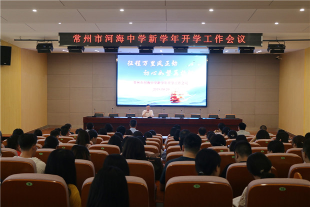 秋风送爽意,河海展新颜。08月29日上午,常州市河海中学新学年开学工作会议在河海中学新校区200人报告厅隆重举行。会议由贺文明副校长主持。