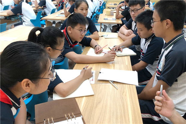 七年级的同学提困惑,八、九年级的同学教方法,大家各抒己见,在讨论中发现问题,解决问题。