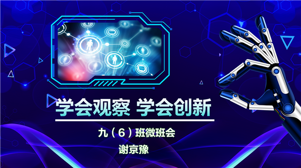 今天,我在九(6)班开展了以“学会观察、学会创新”为主题的微班会活动,通过欣赏电影片段和分享讨论,让学生在观察、思考、设问、协作中感受探索知识的快乐。希望学生在探索的过程中开辟属于自己的道路,绽放出创新型思维的绚丽火花,在收获的同时不断进取,达到知行合一、学以致用的彼岸。