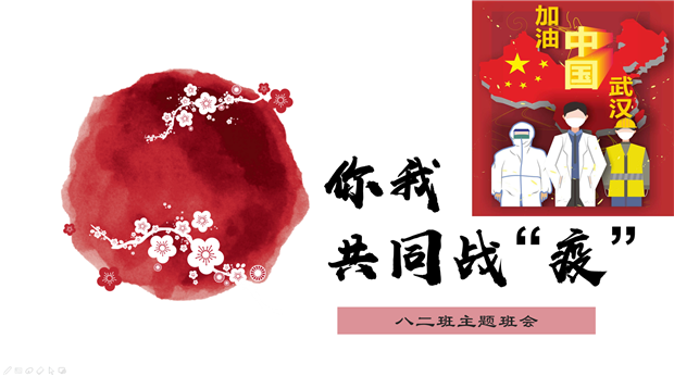 这次班会不是上传下达的无聊动员会,也不是简单化的爱国主义教育,而是以一种活泼,亲切的方式,冷静地分析了形势,提出了切实的对策,还普及了病毒相关的知识,体现了张老师和班委们的良苦用心。视频、朗诵和同学们的作品都分外感人,给我带来一种恒久的希望和动力。