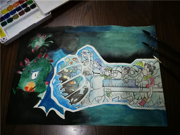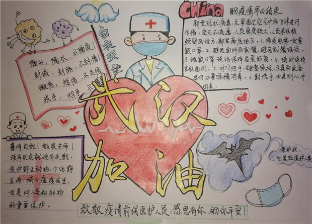 今天,我们看到孩子们用他们的作品传递力量和温暖,为身处防控一线的医务工作者和守护者们祈福,为武汉加油,为中国加油,为世界加油!我们坚信战“疫”必胜,必将迎来暖阳遍地,春暖花开。
