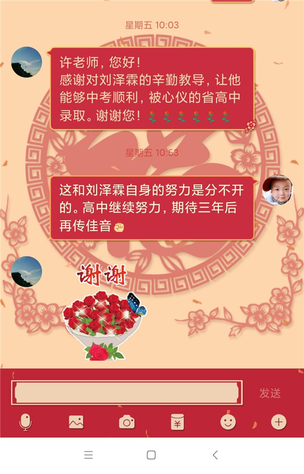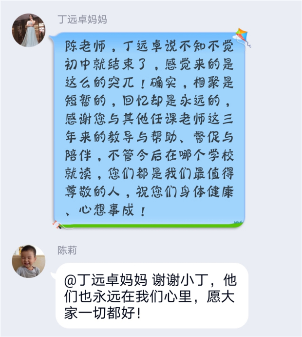 特等奖学金获得者九(7)班吴玘涛同学家长为大家送上毕业祝福,既有殷殷寄托,又有满怀骄傲,成长路上他们是避风的港湾,也是温暖的依靠。