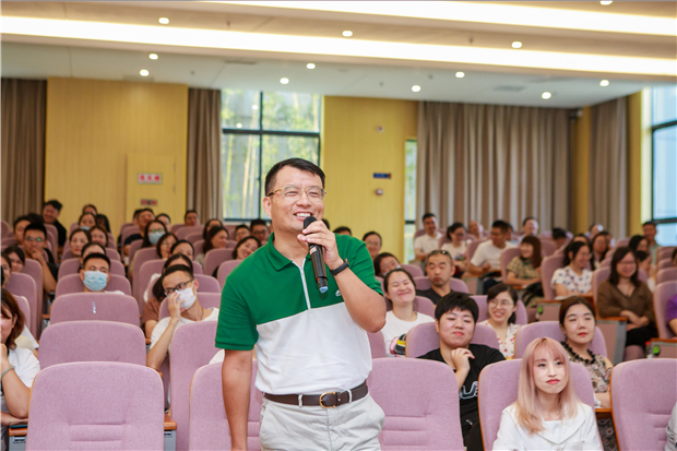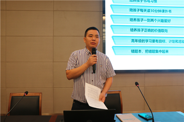 我校优秀毕业生代表、今年经校长实名推荐进入省常中的吴玘涛同学的家长也来到了现场,吴春华先生从孩子的好习惯养成谈起,回溯九年一贯的培养,分享自己的教育经验,语言朴实接地气,方法智慧有成效。