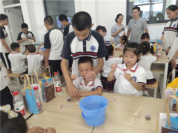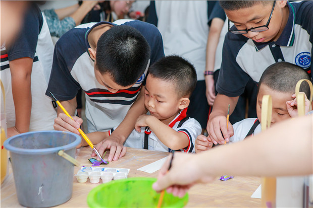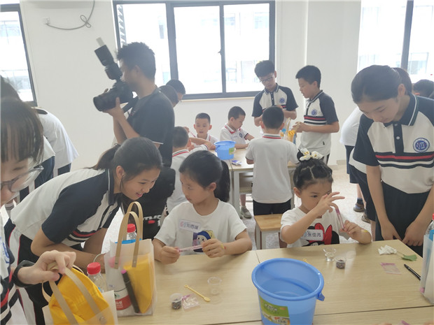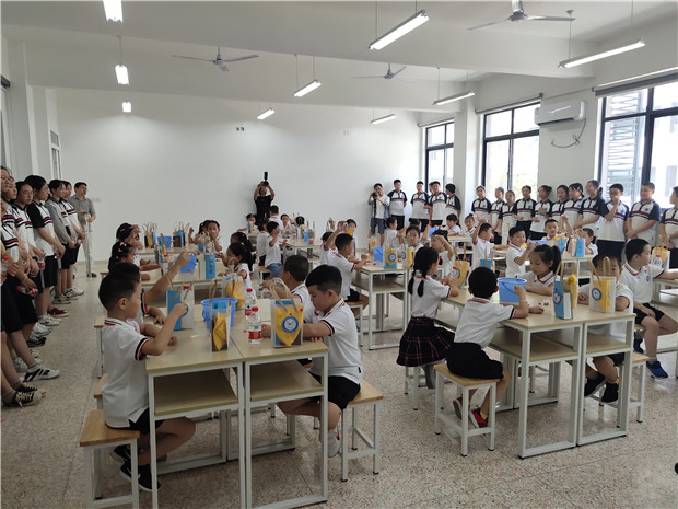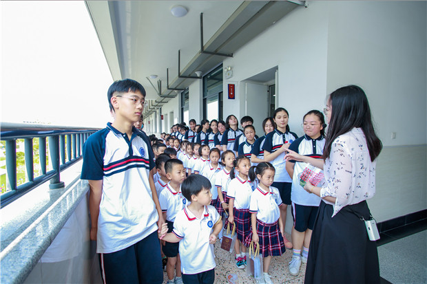 在中学部戴主任的全力支持下,177位志愿者很快招募成功。活动前,戴主任和小学部的蔡部长对所有志愿者进行了不同岗位的岗前培训,志愿者们明确了岗位,清晰了职责。23号一早,所有志愿者身着校服、各就各位,以一个学长的姿态迎接每一位小朋友的到来。整整半天的时间,志愿者们顶着37度的高温,坚守在自己的岗位上,原本也是孩子的他们在这一天里都化身“小骑士”,给家长、老师和小朋友们留下了无法言说的感动……