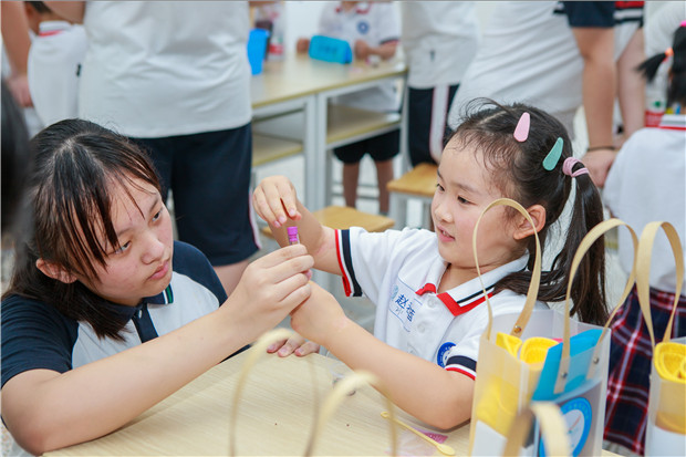 今天仍旧是被爱包围的一天。从七年级的志愿者和小朋友大手牵小手走进教室的那一刻,看着小朋友稚嫩的脸庞上满是对大哥哥大姐姐的依赖,有一位小男生一直抱着志愿者哥哥的腿不愿松开,仿佛是抱着自己的爸爸妈妈,这时我就知道,短短一段路,志愿者无微不至的关怀已经给小朋友带来了绝对的信任感和安全感。