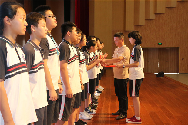 仪式从小学部与初中部同学的亲切互动开始。互相问好,互诉愿景,小学部小朋友童声稚嫩却坚定,让我们看到河海校园新添的生趣和活力。初三学子则展示了初中生的责任和担当,体现了毕业班的豪情和壮志。