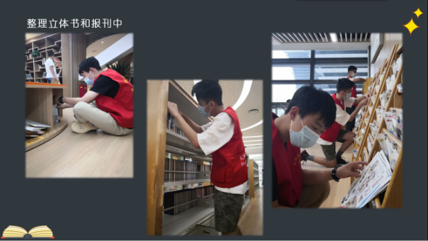 八(7)班的同学则走进常州新地标——常州图书馆,耐心地帮助小朋友借阅绘本、摆放图书,并且为“小书虫”们讲解书中内容,认真负责的样子便是志愿者责任与担当的最好注脚。