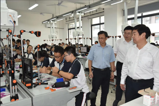 在赵卫勇校长的陪同介绍下,齐书记一行还参观了美丽大气的河海校园:观看文化展板,了解学校集团办学、高质发展的历史;查看学生课堂,聆听小学部学生培养、课程建设的特色;走近智慧云教室,感受教育教学装备的信息化与现代化。