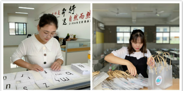 麻雀虽小,五脏俱全。小学部经历了从无到有、从有到优的过程——拼音卡片的制作、拎包班徽的设计、风车景点的来历……创意在指间飞舞,汗水把衣衫浸湿。可当看到走出校门的孩子回过身来鞠躬致谢的身影,听到河海号鸣笛扬帆,顺利启航的时候,所有的“苦”荡然无存,留下的只有内心的满足与欣慰。