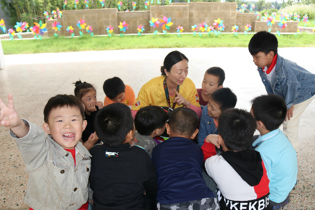 聆听了王校长的介绍之后,讲师和助理们便迫不及待地去和水娃们见面啦!