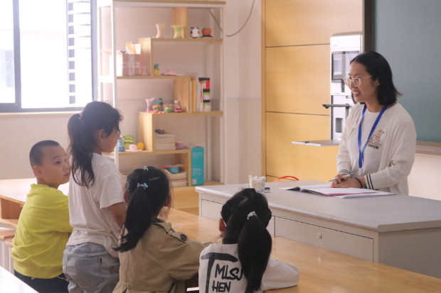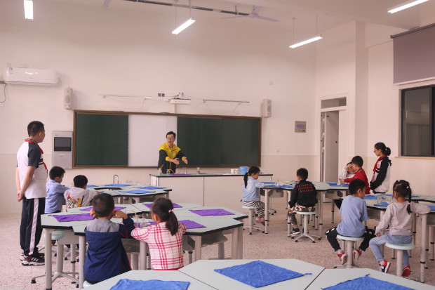 在人群中,原本在水娃口中的“大哥哥、大姐姐”俨然变成了循循善诱的“讲师助理”。别看他们还是初中课堂的学生,可“讲师助理”确做得有模有样。带领小朋友找到教室,手把手教水娃们画沙画、做实验……原本只要“工作”20分钟,可他们确以高度的责任心一直“助理”到课程结束,直到将小朋友送回各自的教室,言行举止令人刮目相看,赢得了师生的高度赞赏。