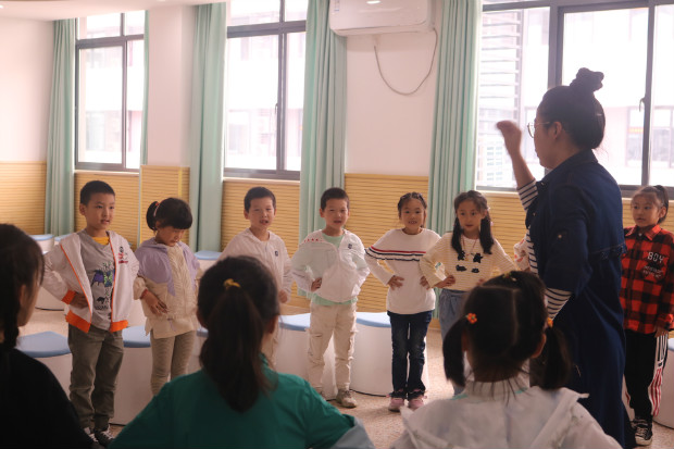 双手叉腰在做什么呢?原来是在感受老师教发音时腰腹部的变化呀。学得这么认真,大家都想听一听你们美妙的和声呢。