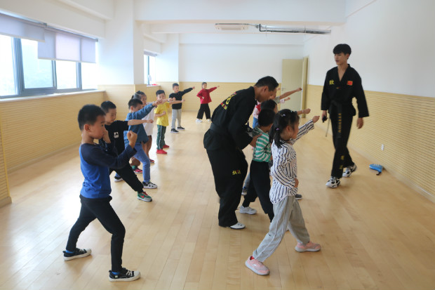 “嘿!哈!”别被吓到哦,这是在练习跆拳道呢,动作的练习还得慢慢来,但你听听这“震天动地”的声音,是不是有了跆拳道的气势啦。