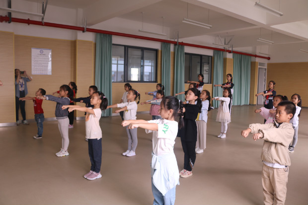 水娃们,你们紧盯老师的动作,认真跟练的样子真好看,好像每一个人都在闪闪发光。