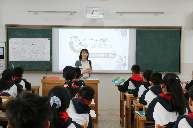 范佩老师以学校的“南山竹海在地研学活动”为背景,将地理知识融入户外研学活动,并转化到课堂里。寻山之位、画山之道、观山之理、游山之乐……环环相扣的活动中将理论和实践相结合,在研究家乡地理知识过程中寻求学生家国情怀与地理核心素养的高度契合。