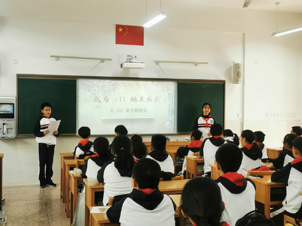 首先,工作室成员、我校七年级陈莉老师开设了《我与一班共成长》主题班会。这是一场学生唱主角的班会,从“我与集体之初见、感动、团结、展望”这四个角度展开,在丰富多样的形式、声情并茂的述说中让我们看到了小小少年、大大能量,看到了七(1)班的精彩展示,更看到河海少年的未来可期。