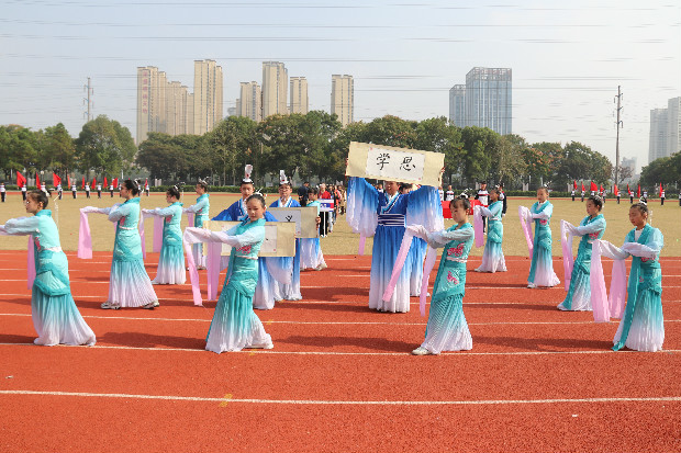 初中部三个年级更是精心准备,表演节目精彩纷呈。整齐的队伍、鲜艳的服装、新奇的道具……都将河海学子的精气神展现得淋漓尽致,全场掌声雷动,体现着他们的智慧与才干。
