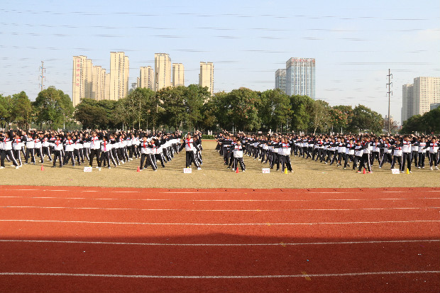 你看,七八年级同学的广播操比赛,动作有力,节奏齐整,充分展示了学生青春靓丽的风采。