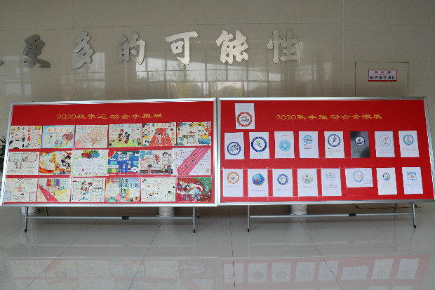 运动会开始前,各班就创作了奇思妙想的小报和丰富多样的会徽。