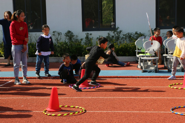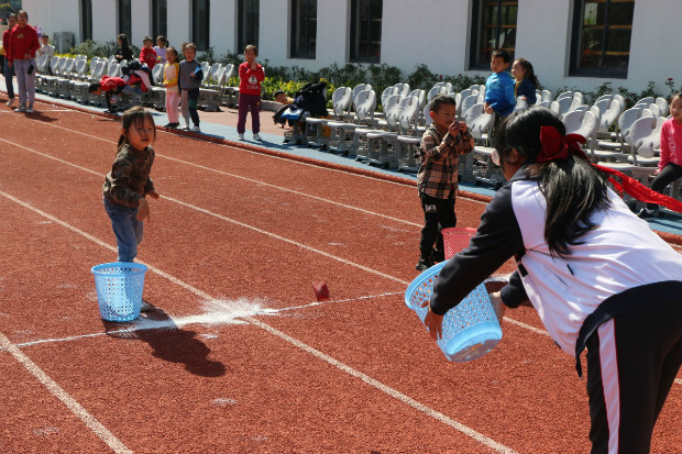 “你抛我接”、“春种秋收”,这次水娃娃们的搭档可非同一般,他们都是来自初中部的大哥哥大姐姐们。有了哥哥姐姐们的加入,我们的队伍变得更加所向披靡、势不可当!你瞧,眼看着我投偏进不了,可大哥哥迅速移动篓子,让沙包巧妙地“钻”了进去,真就是大人们口中的“配合默契”吧;“春种秋收”就更有趣啦,大哥哥大姐姐种的快,我们小朋友就收得快,“加油加油”的声音此起彼伏,一“家”人齐心协力,勇夺第一!