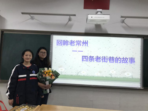 这次讲课我主要采用的是和学生互动的方式,是希望学生能积极参与进来,能让气氛活跃起来。让我惊讶的是,孩子们的表现非常好,非常的配合。在整节课程中,孩子们争先恐后回答着我的问题,跟我互动的非常好,时而鼓掌时而安静,没有一个孩子走神、没有一个孩子交头接耳。在每个同学的眼睛里我看到了孩子们对老常州故事的兴趣,望着讲台下热情洋溢的孩子们,我越讲越高兴,短短的40分钟很快就在掌声中结束了,让我意犹未尽,其中快乐和美好的感受依然留在我的心中。