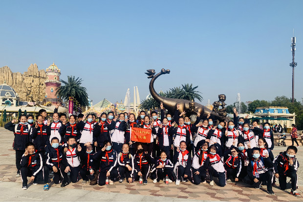 中华恐龙馆是中华恐龙园的核心和灵魂,是恐龙科普知识的海洋,同学们徜徉其中,揭开恐龙的神秘面纱;疯狂火龙钻、雷龙过山车、穿梭侏罗纪……刺激、动感的游乐项目精彩纷呈,同学们玩得不亦乐乎,感受着恐龙世界中的神秘与欢乐。