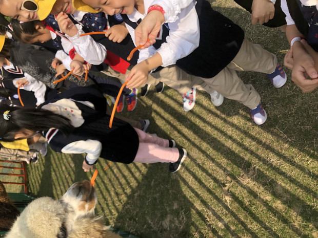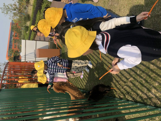 为什么我们手上都有两根胡萝卜条呢?因为我们要去投喂一群小可爱啦!