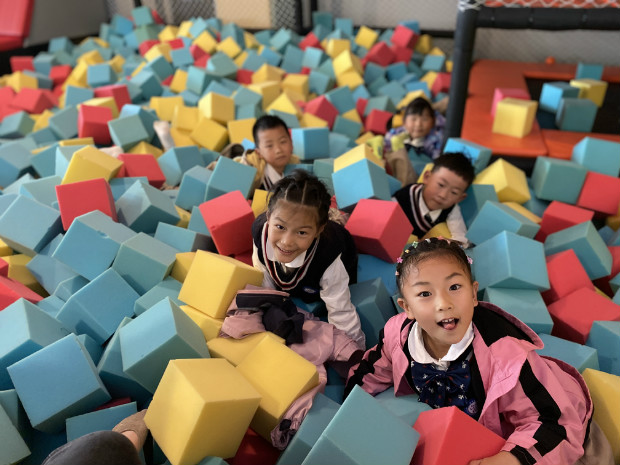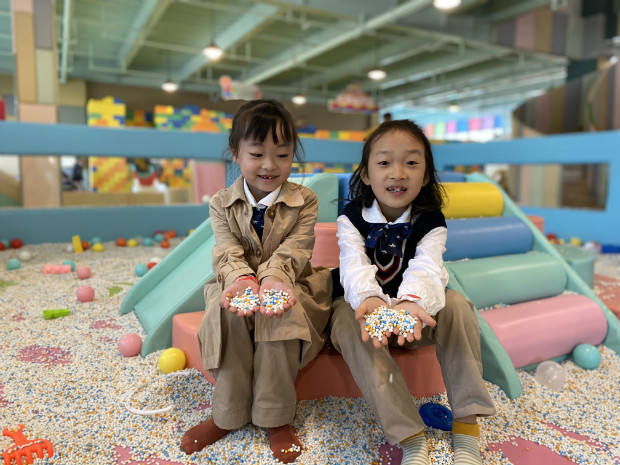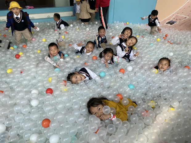 哇!是海洋球!谁快来拉我一把,我陷在里面出不来啦!