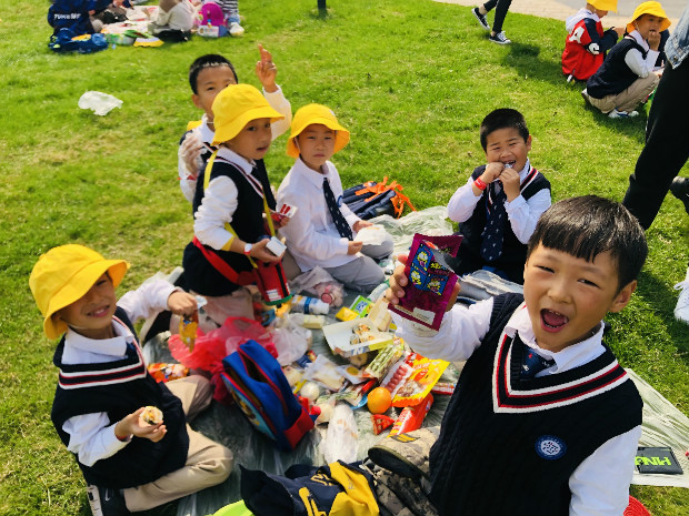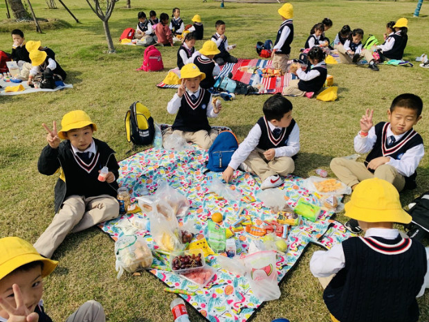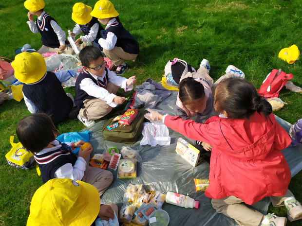 坐在绿茵茵的草地上,拿出爸爸妈妈为我们精心准备的食物,好丰盛呀!