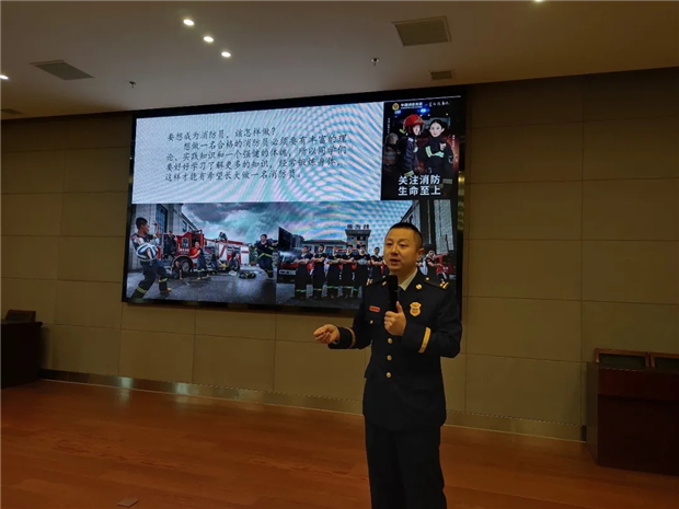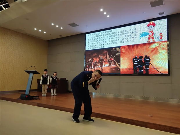 11月9日是消防安全日,为了让河海娃树立消防观念,传承消防精神,小学部邀请了新北区消防救援大队钱正新参谋来到升旗仪式的现场,与小朋友进行了一场“你问我答”的交流。
