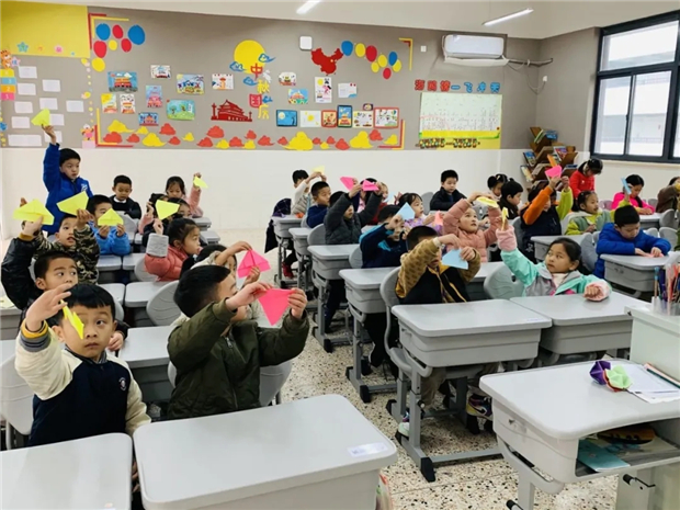 在美妙的歌声中,河海娃们跳起了手势舞《听我说谢谢你》。一朵朵感恩之花在娃娃们的指尖绽放,开满了教室的每一个角落。