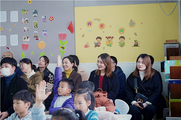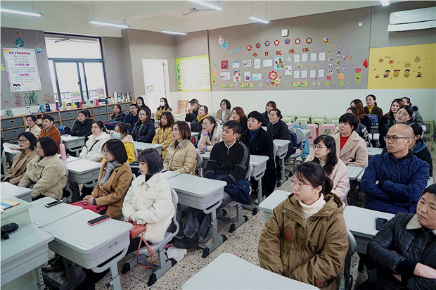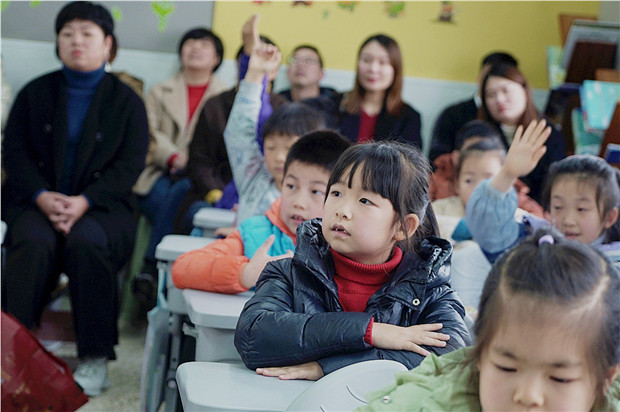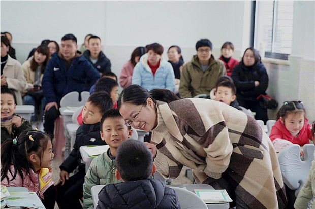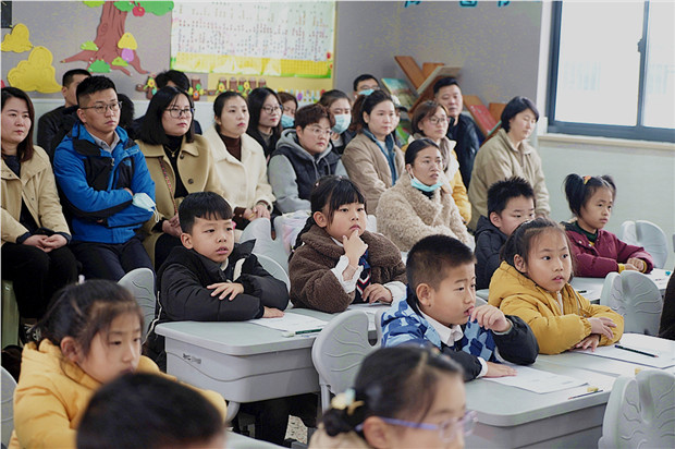 两节课后,家长们坐到了小朋友的位置上,听班主任分享三个月来孩子的成长,听数学老师分析数学要怎样学习,听综合学科老师介绍各自学科。